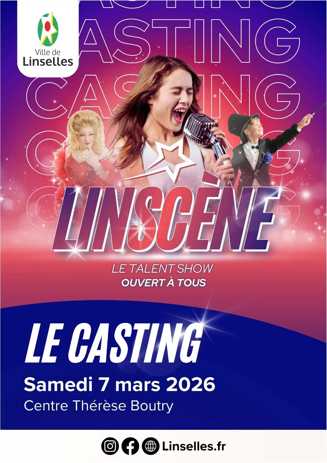 Le casting de Linscène se déroulera le samedi 7 mars 2026 au Centre Thérèse Boutry.